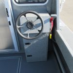 - Transverse fish box welded in floor, hinged door, with drain and valve