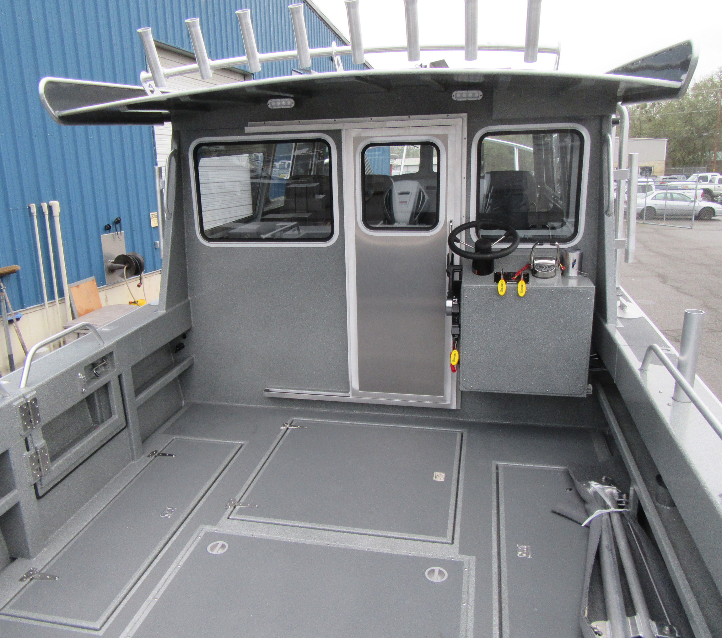 - Electronic bracket welded under aft cabin bill